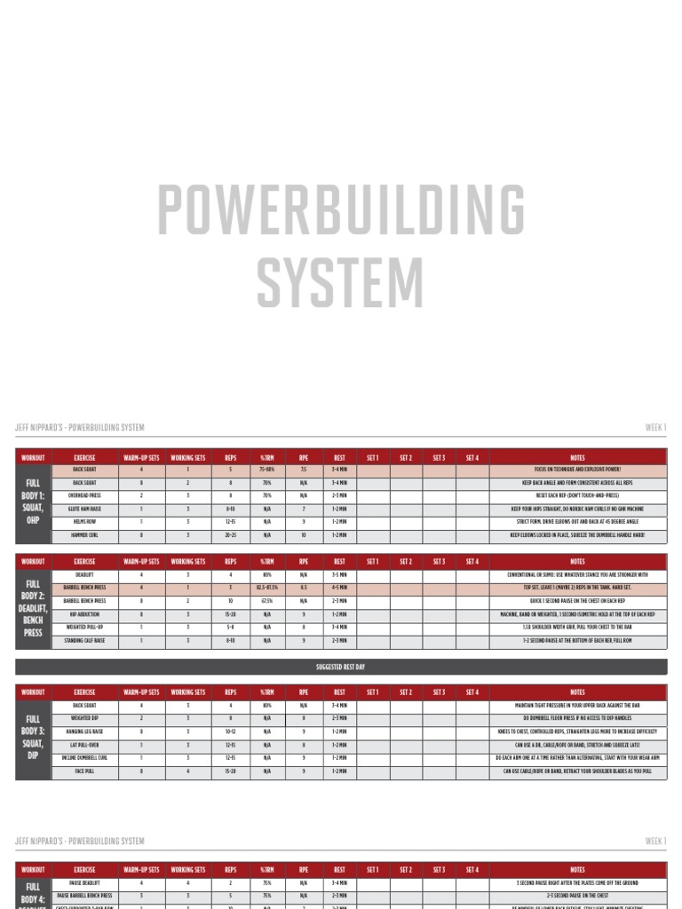 This thread will periodically be purged of old posts. P ow e r b u i l d i n g p h as e 30 4xweek 3 table of contents disclaimer 2 about me 6 key terms 8 about this program 12 faq 18 warm up 34 powerbuilding program 30 38 program explained 71 training variables 90 exercise video demonstrations 96 exercise substitutions 101 references 105 about me jeff is a professional natural bodybuilder.